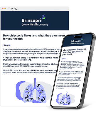 This is not an insurance benefit, and does not cover or provide support for supplies, procedures, or any physician-related services associated with BRINSUPRI. General, non-product specific insurance deductibles are also not covered by this program. Insmed reserves the right to rescind, revoke, terminate, or amend this offer, eligibility, and terms and conditions at any time without notice. Patients, pharmacists, and prescribers cannot seek reimbursement from health insurance or any third party for any part of the benefit received by the patient through this offer. This offer is not conditioned upon, or reward for, any past, present, or future purchase, including refills. The copay card is non-transferable, limited to one per person, and cannot be combined with any other offer or discount. This program is not valid where prohibited by law, taxed, or restricted. Offer has no cash value.